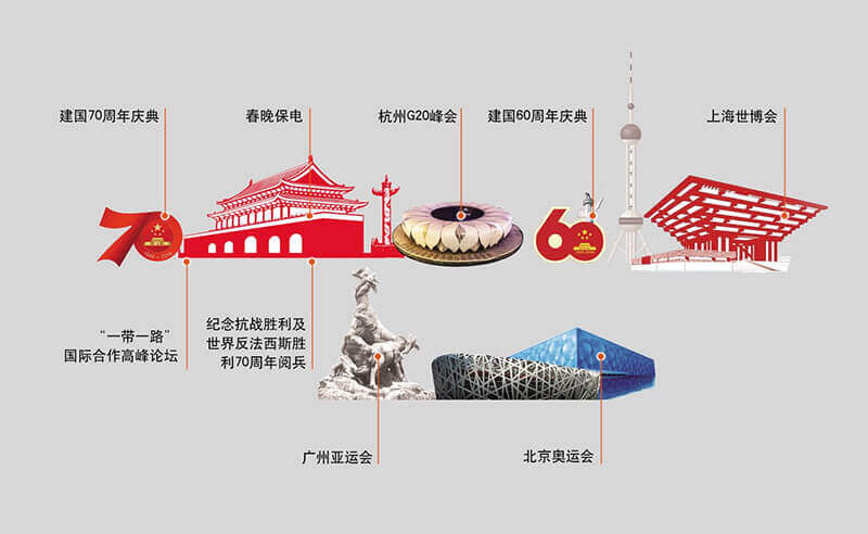 基于安全穩定的系統方案、及時完善的工程服務、靈活周密的現場指揮、專業合作的項目團隊,产品中心成功完成建國70周年國慶慶典、“一帶一路”國際合作高峰論壇、春晚保電、杭州G20峰會、建國60周年慶典、上海世博會、廣州亞運會、北京奧運會等國家級重大政治活動保電工程,受到了業界一致肯定,产品中心亦被業界媒體冠以“保電專家”稱號。