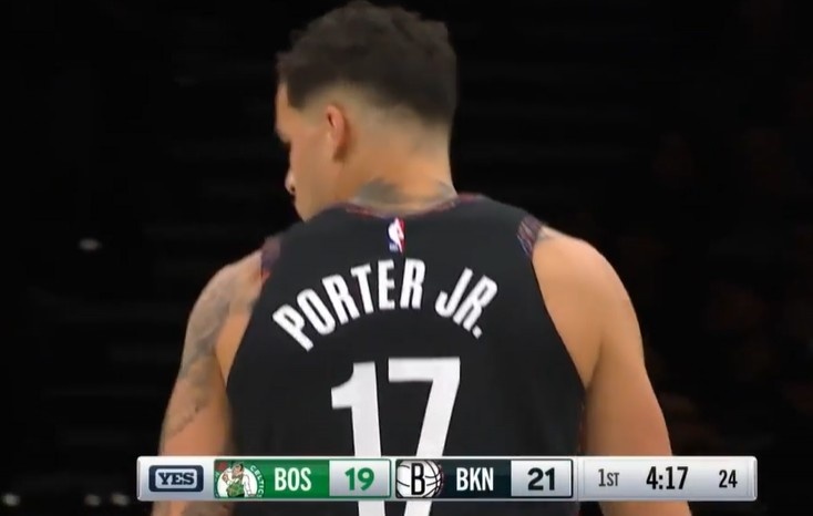 掃一掃下載游戲真是自信!小邁克爾·波特踩著logo堅決出手 加長三分空心命中!